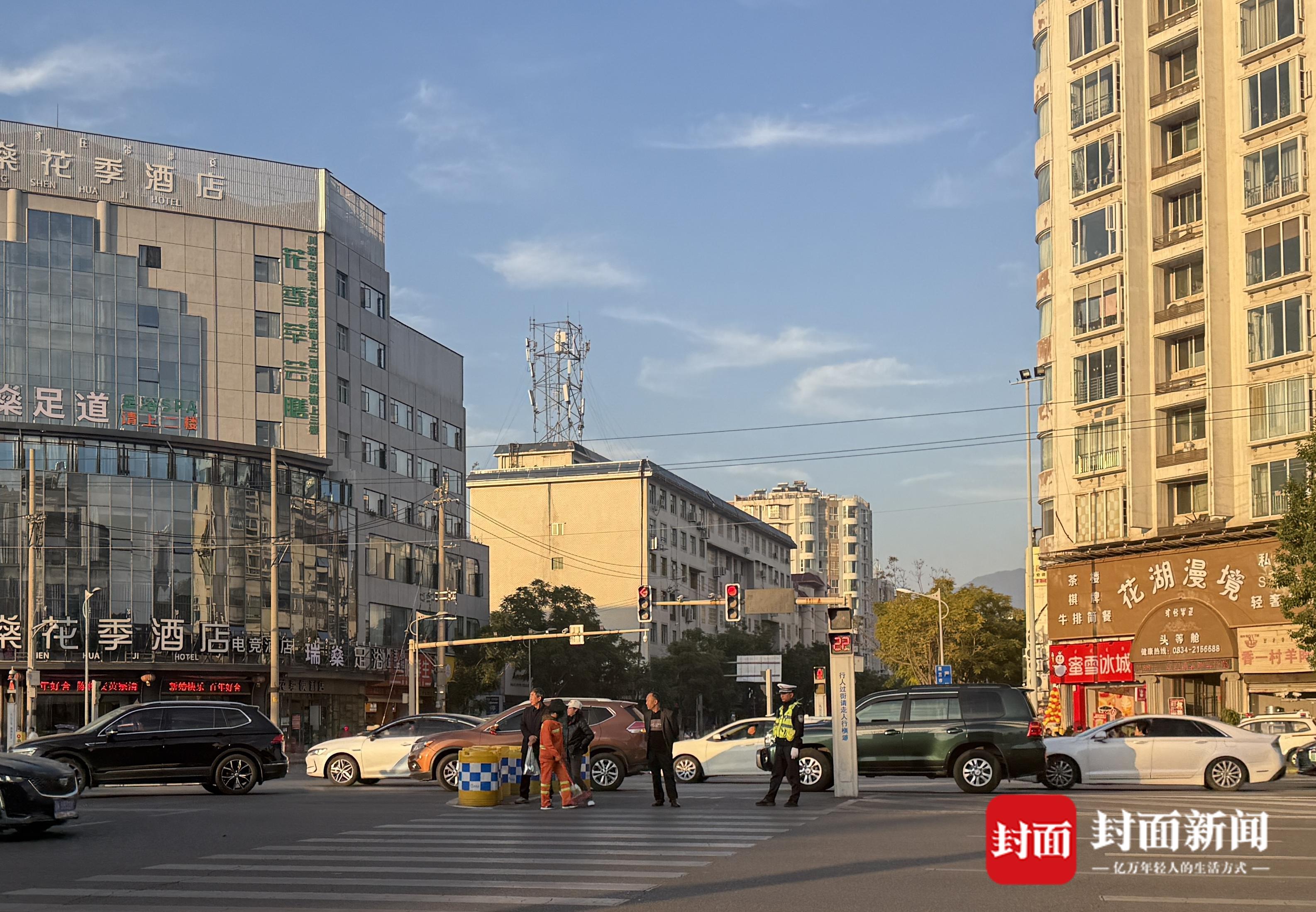 12月11日16时,封面新闻记者来到网友描述中的十字路口。该路口位于航天大道与健康路、风情园路交汇口,周围有超市、酒店以及凉山州民族体育场,是当地交通主要干道,人、车流量密集。